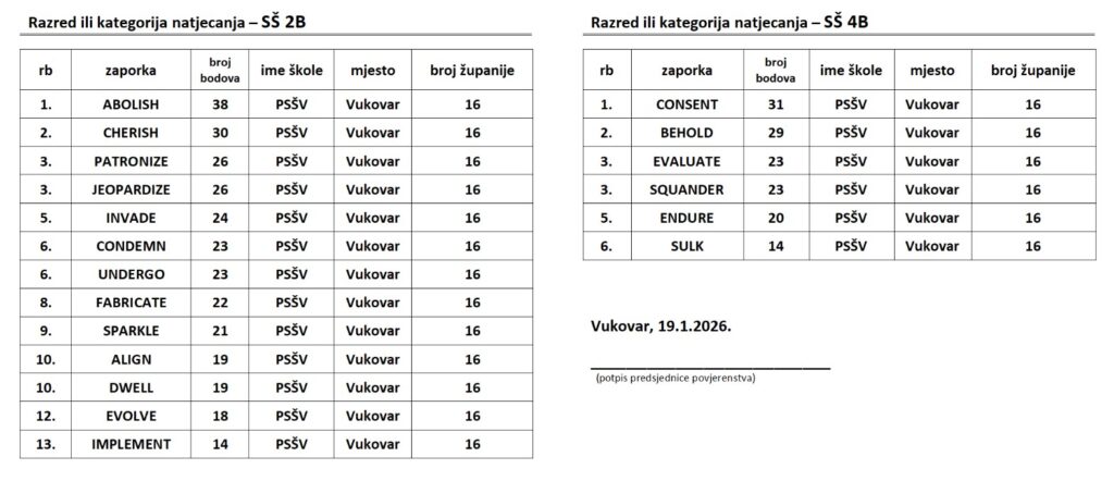 Dana 19. siječnja 2026. u našoj je školi održano natjecanje iz Engleskog jezika na kojemu je sudjelovalo 19 učenika.
