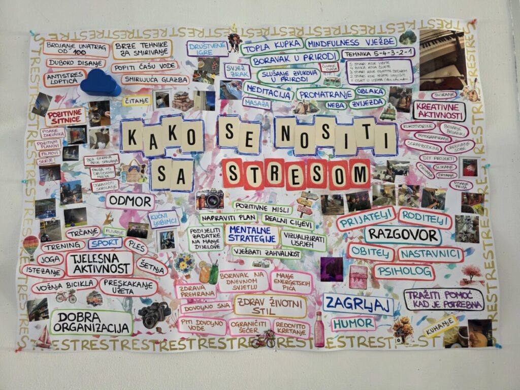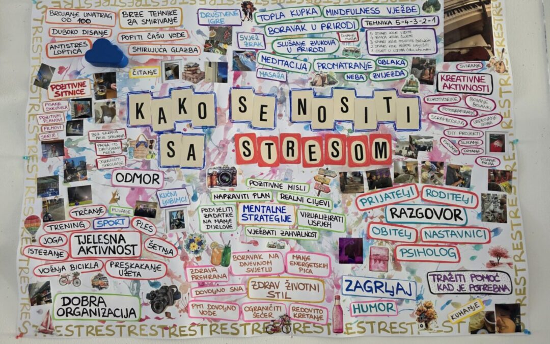 Istraživali su što nam može pomoći da se s njime lakše nosimo. Isprobali su progresivnu mišićnu relaksaciju – tehniku opuštanja koja pomaže u smanjenju napetosti i jačanju osjećaja smirenosti. Svoje ideje i rezultate istraživanja prenijeli su na kreativni plakat, pritom naglašavajući kako i male, svakodnevne sitnice mogu imati veliki utjecaj na naše raspoloženje i mentalno zdravlje.